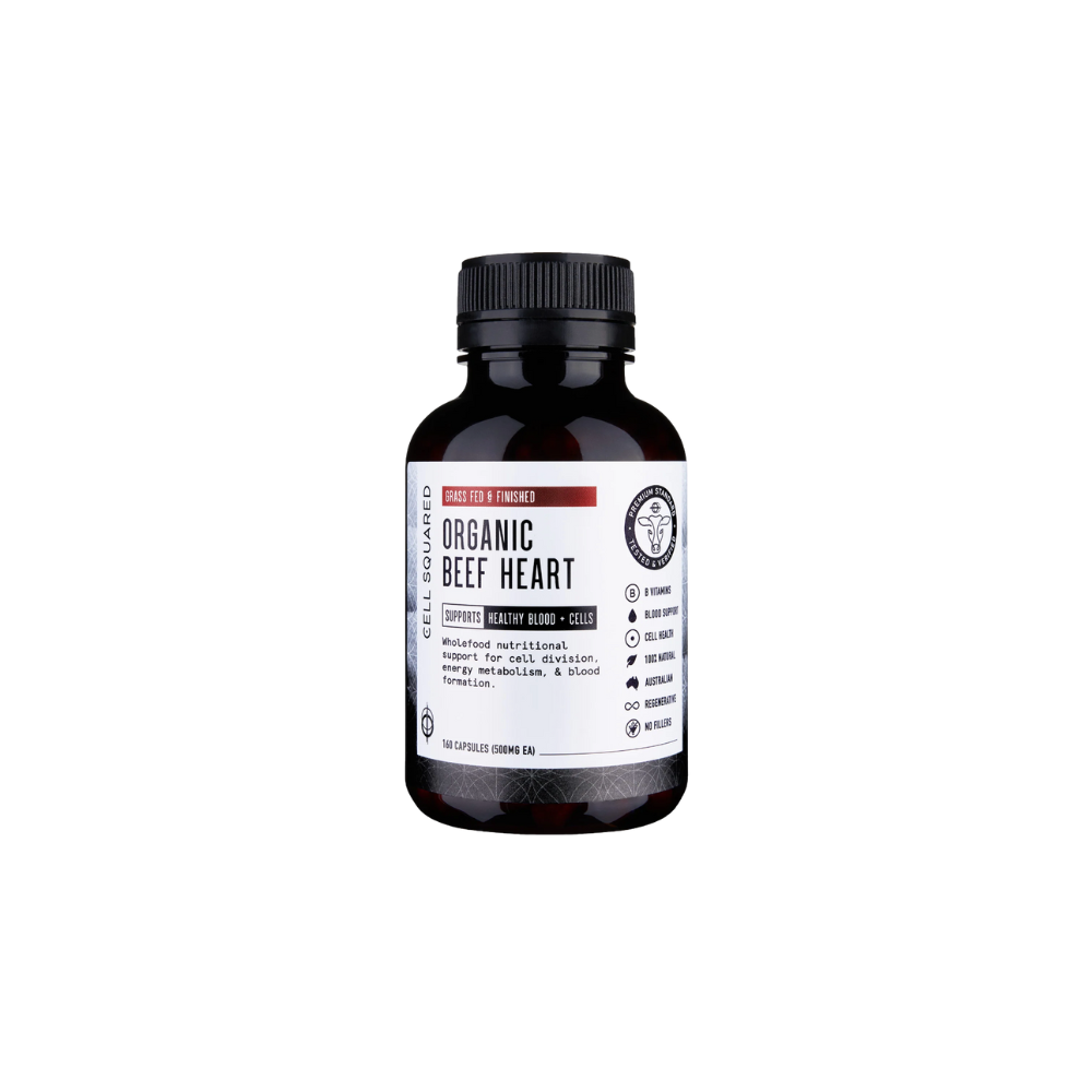 Cell Squared Organic Grass-Fed Beef Heart is a premium, freeze-dried wholefood supplement made from Australian certified organic, pasture-raised, grass-fed beef heart. Carefully processed in small batches and independently tested, it delivers naturally occurring nutrients in their most bioavailable form. Traditionally prized by our ancestors, beef heart is a rich wholefood source of vitamin B12, making it an easy, convenient way to support energy, blood health and overall vitality — without the taste or prep of fresh organs.