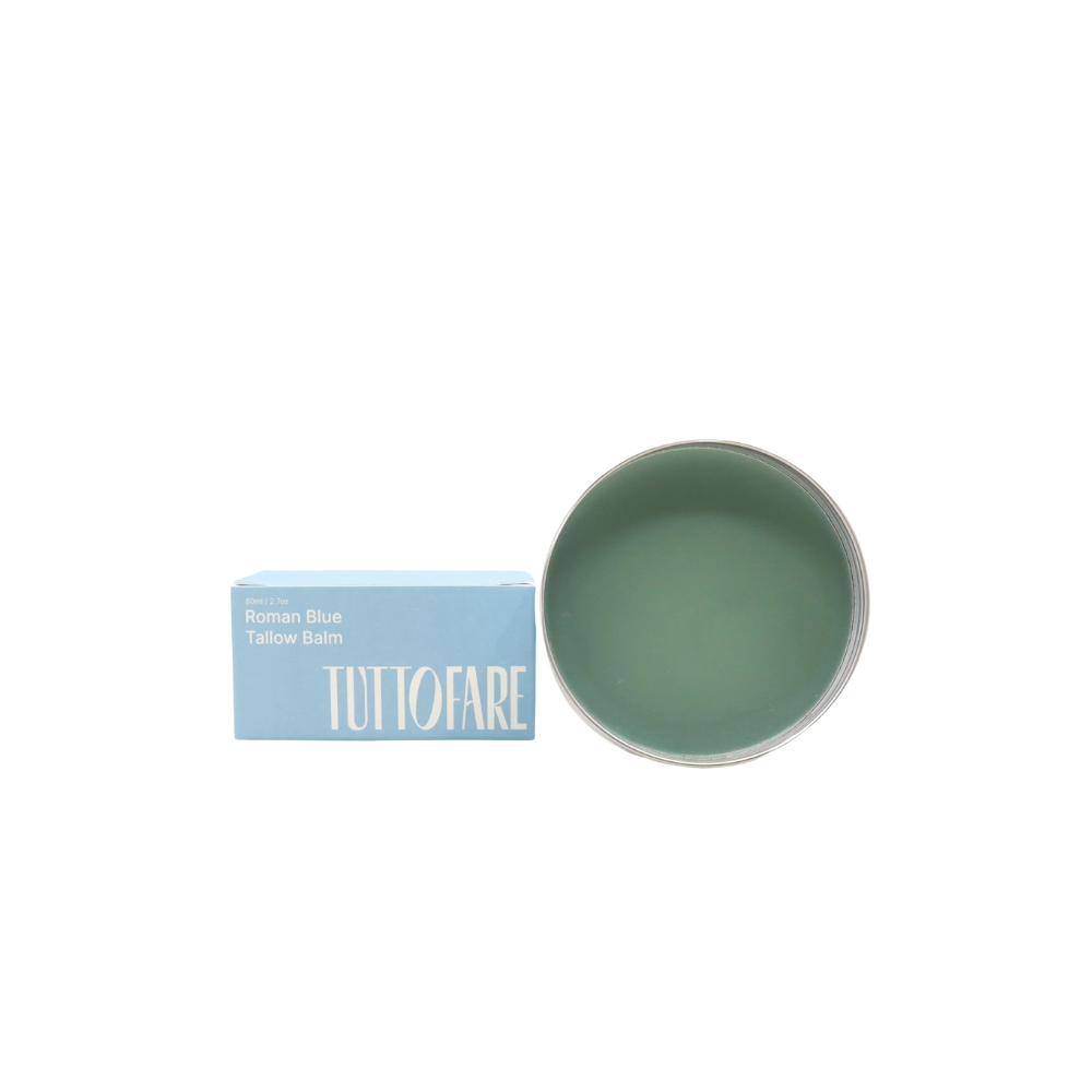 Roman Blue Tallow Balm Tuttofare is a luxurious, multipurpose moisturiser that blends the deep nourishment of a balm with the silky finish of a cream. Crafted with a unique waterless formula, it features grass-fed, grass-finished beef tallow combined with jojoba oil and olive squalane to closely mimic the lipids found in healthy skin. Enriched with antioxidant-rich blue tansy and Roman chamomile, it helps soothe inflammation, support the skin barrier, and enhance the skin’s natural function. Naturally abundant in fatty acids and fat-soluble vitamins, this daily cream locks in hydration, maintains moisture, and leaves skin visibly soft and luminous—suitable for all skin types, including sensitive skin.