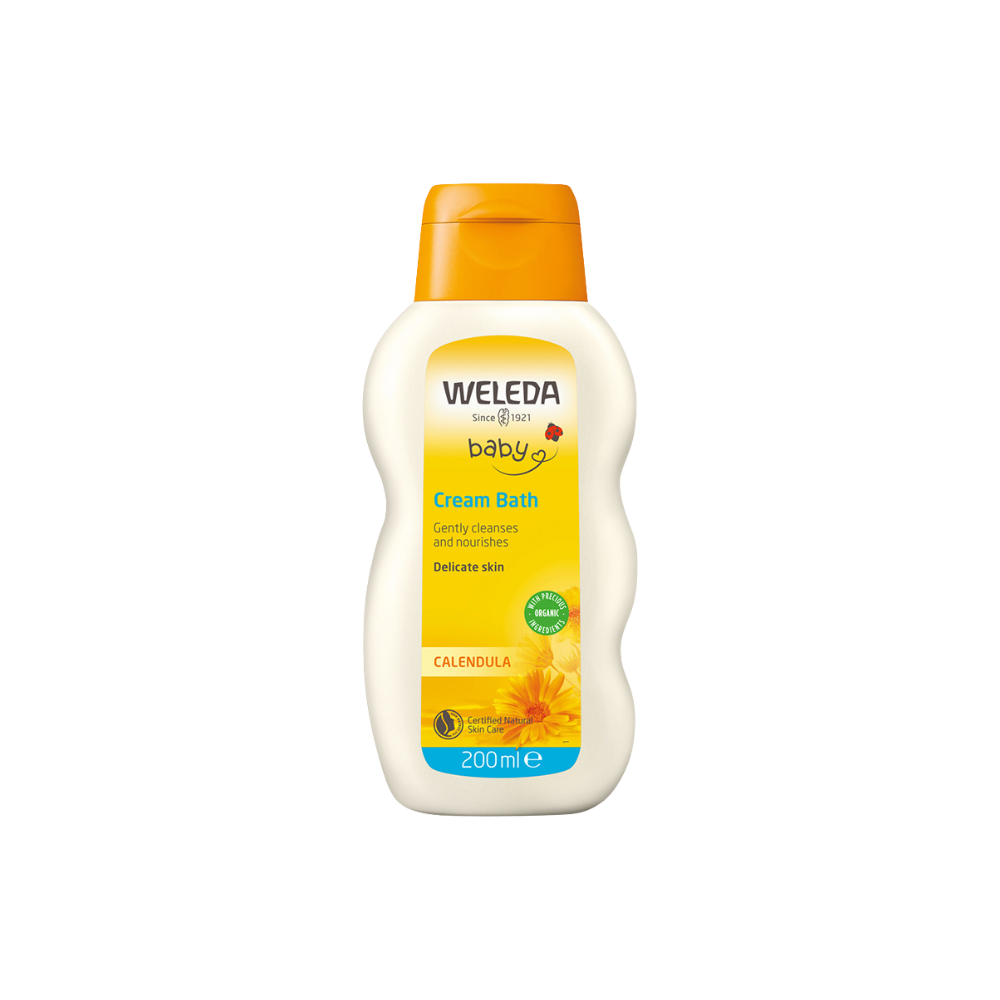 Weleda Baby Cream Bath Calendula is an ultra-gentle, nourishing bath formula designed to cleanse delicate infant skin without drying it out. Blended with soothing calendula, sweet almond oil, and organic sesame oil, it leaves skin soft, smooth, and comforted while supporting the skin’s natural protective barrier. Its mild, natural fragrance keeps baby smelling fresh and clean—just like baby should. Dermatologically tested and free from synthetic preservatives, fragrances, colourants, and mineral oil derivatives, it’s perfect for sensitive or dry skin.