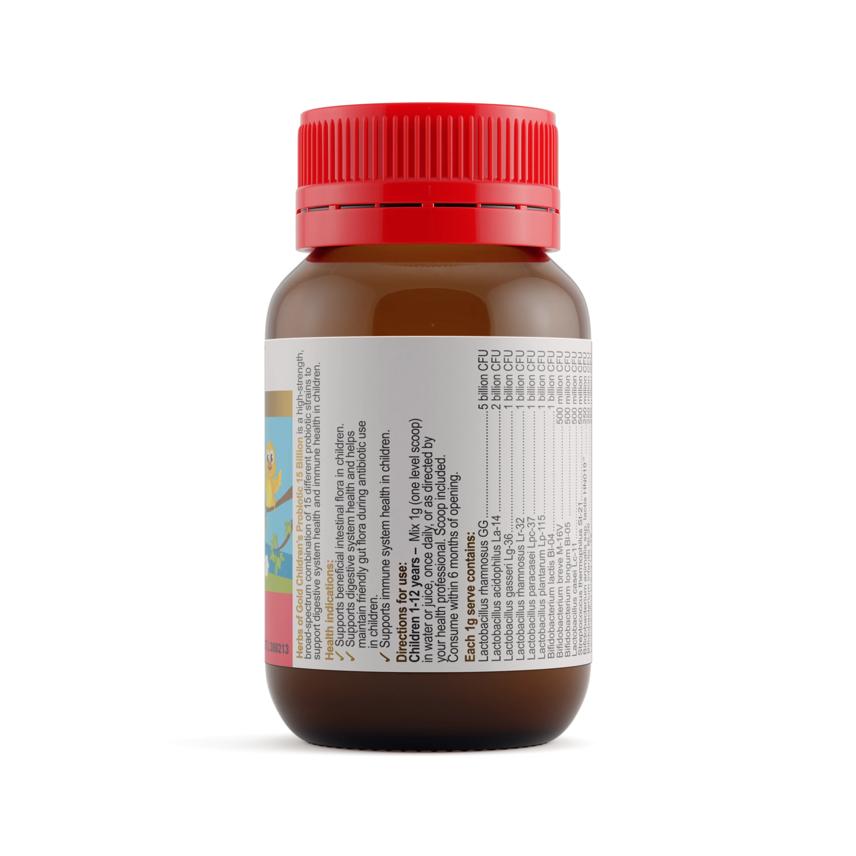 Give your child's digestive system and immune health the best start with Herbs of Gold Children's Probiotic 15 Billion. This high-strength, multi-strain unflavoured powder is thoughtfully formulated to support beneficial gut flora and overall digestive system health in children from 1 to 12 years.