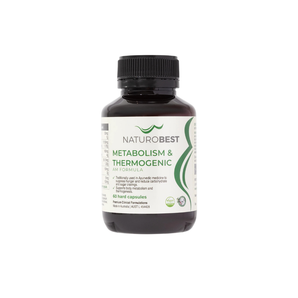 Boost your body’s metabolic health with NaturoBest’s Metabolism & Thermogenic AM Formula. This unique herbal supplement supports thyroid and adrenal function, helping you adapt to stress while aiding in energy production and thermogenesis. Traditional Ayurvedic herbs in this formula reduce cravings and control hunger, making it a valuable addition to your weight management program when combined with a healthy diet and exercise. Designed with ingredients to improve your metabolism and stamina, this formula will help you feel balanced and energised.