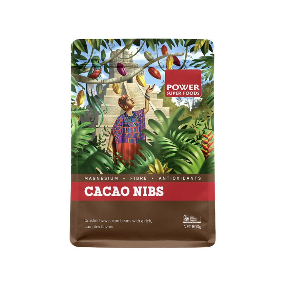 Power Super Foods Cacao Nibs provide a rich source of antioxidants and fibre. They also contain calcium, iron and magnesium which contributes to healthy energy metabolism and muscle function.