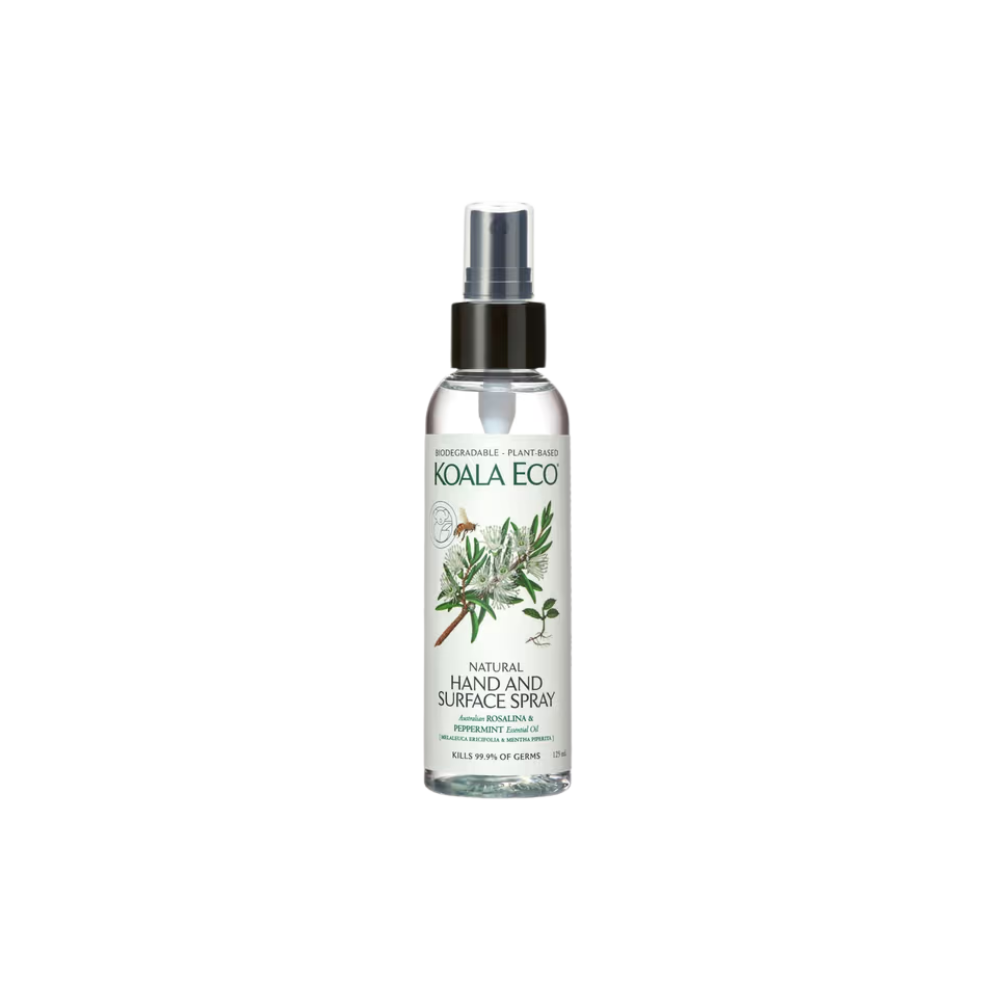 Leave your hands and surfaces clean on the go with the Koala Eco Natural Hand & Surface Spray Rosalina & Peppermint.