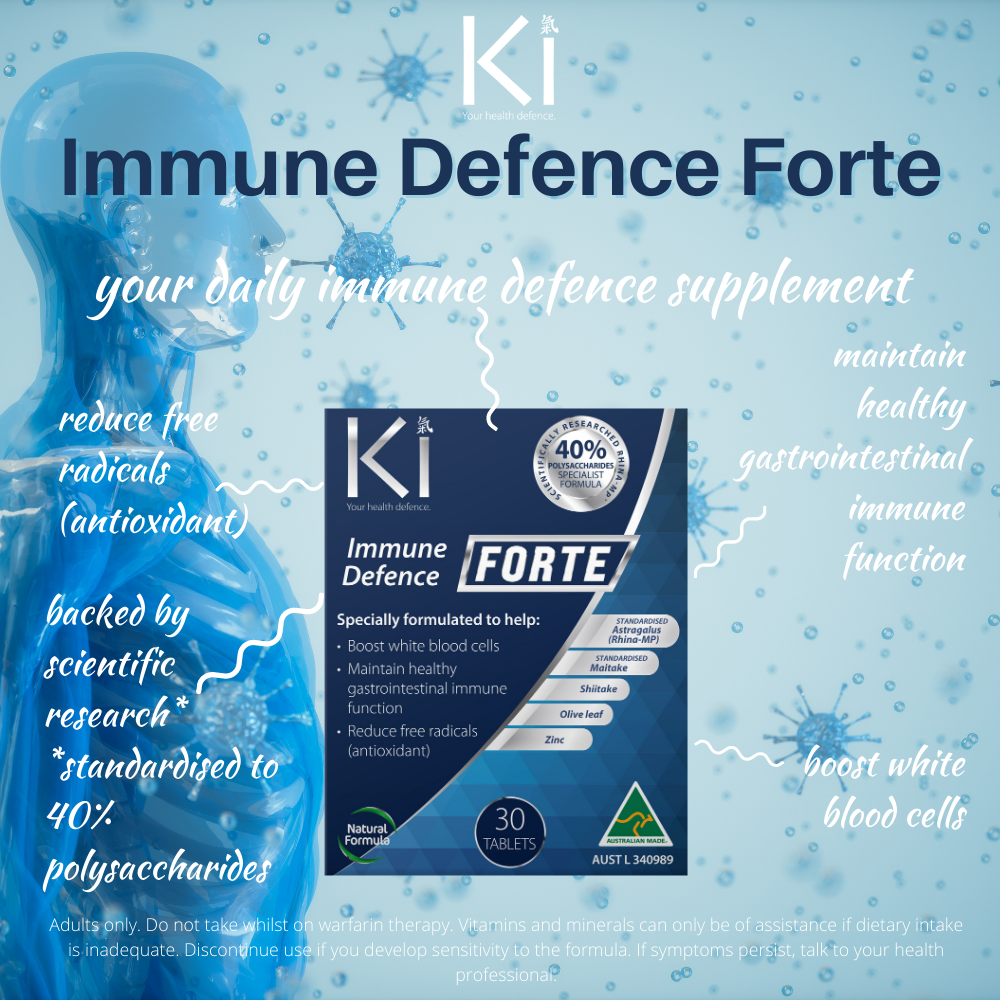 Ki Immune Defence Forte is specially formulated to provide 40% polysaccharides through standardised ingredients that work with your body to support the immune system.