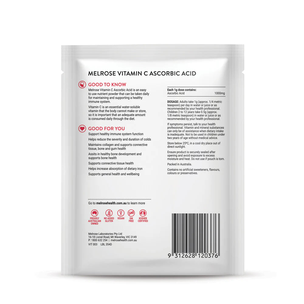 Melrose Vitamin C Ascorbic Acid is a 100% pure form of Vitamin C which supports immune system health, while also working as an antioxidant to prevent free radical damage to body cells. Including Vitamin C in the diet helps the body absorb nutrients like iron.