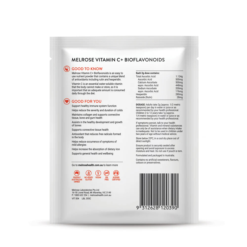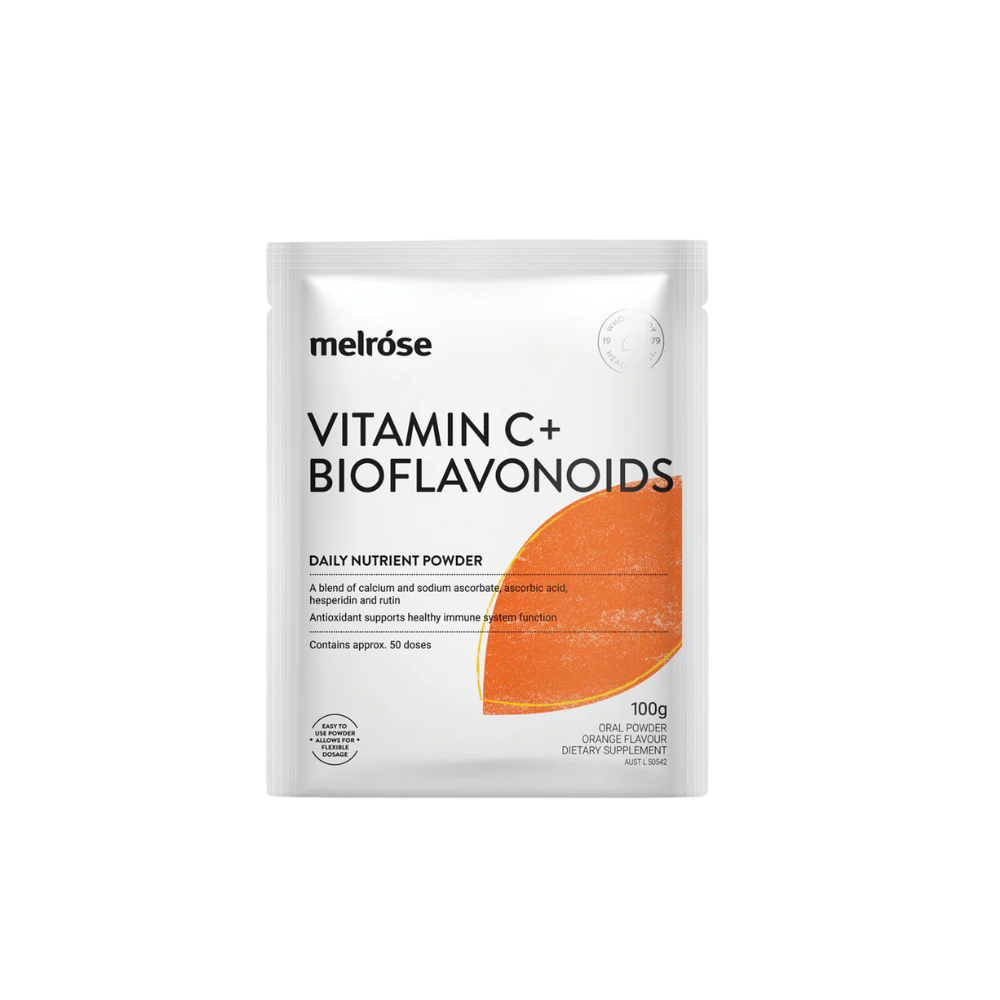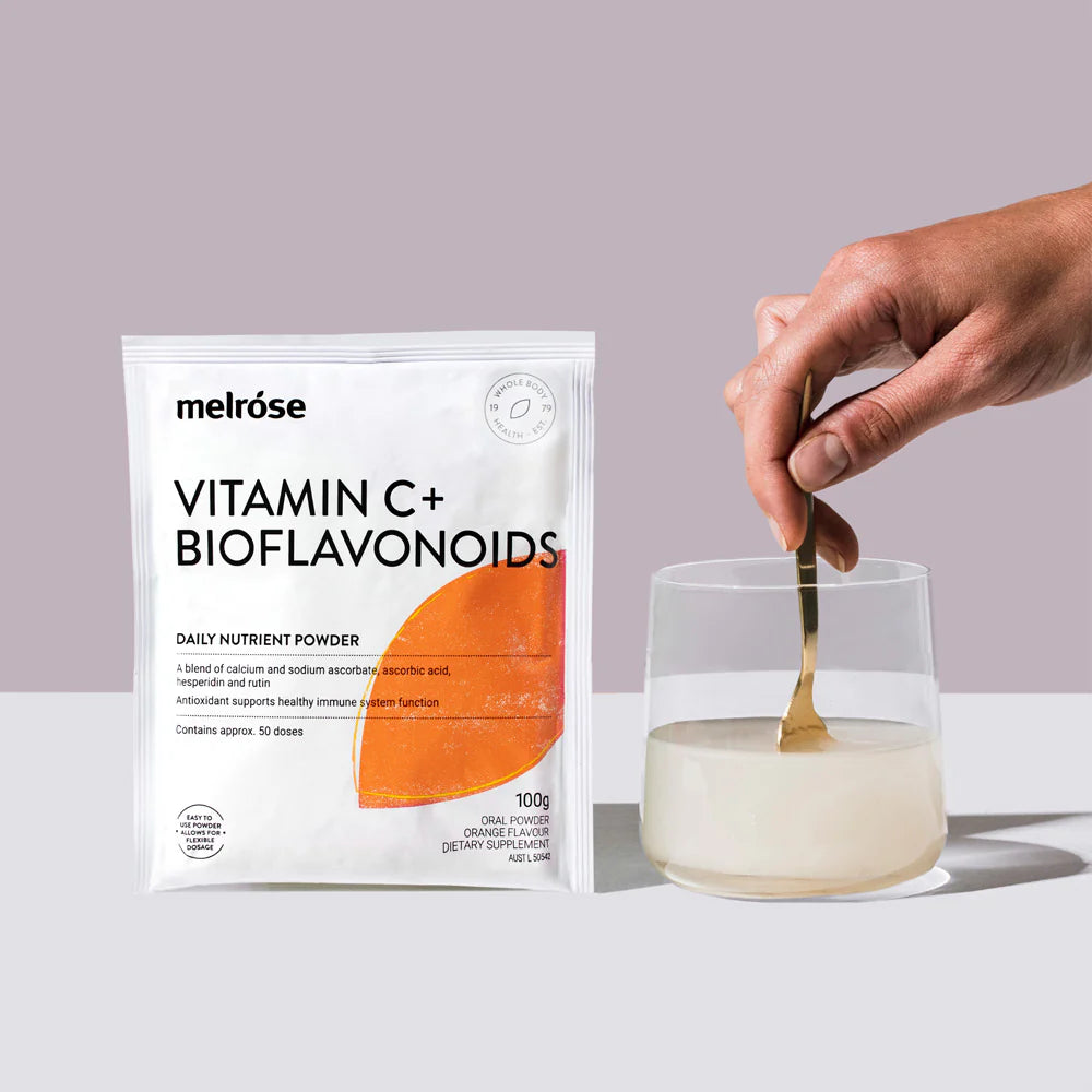 Melrose Vitamin C+ Bioflavonoids is an easy-to-use nutrient powder that contains a unique blend of calcium and sodium ascorbate, ascorbic acid, hesperidin and rutin.