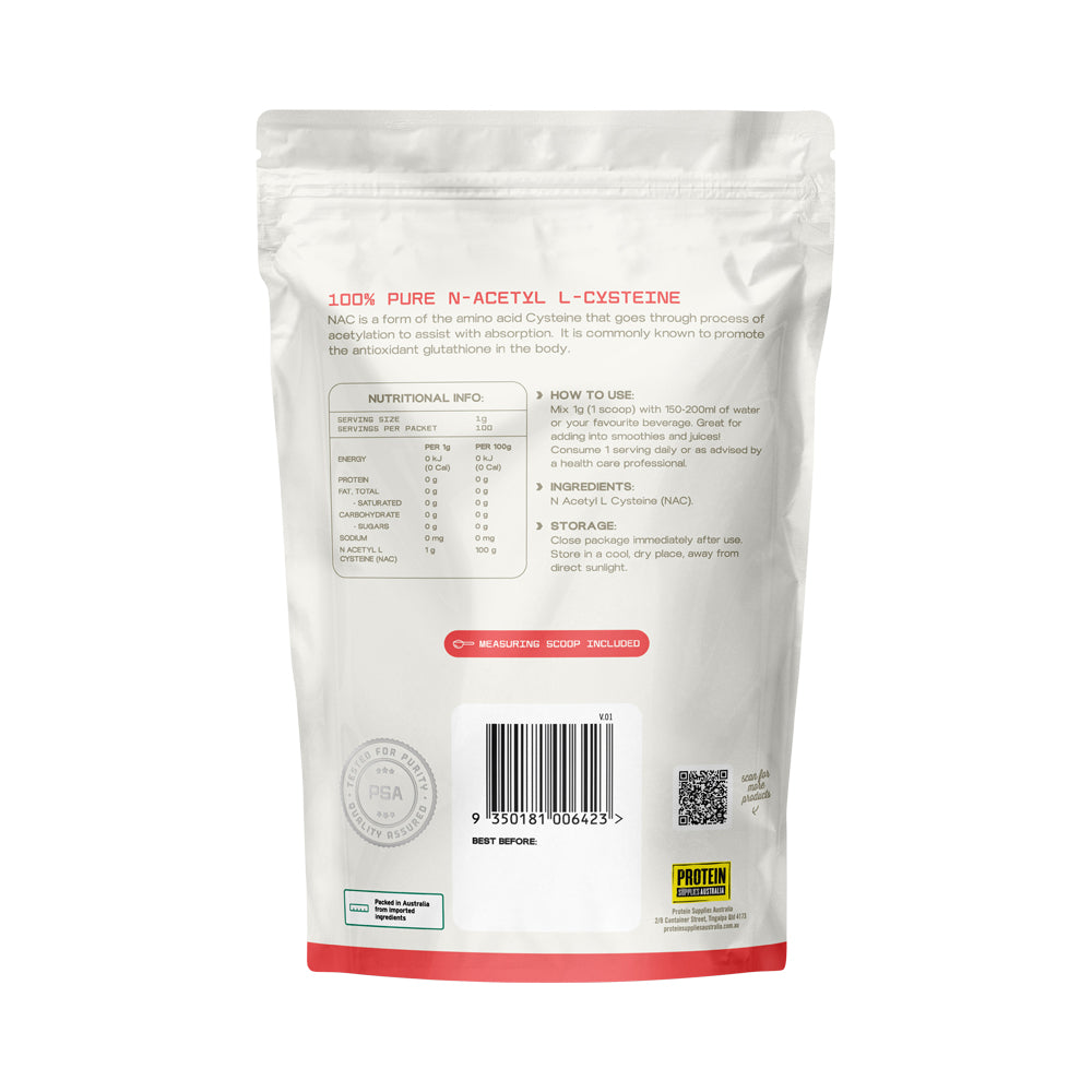Protein Supplies N-Acetyl L-Cysteine is a high-quality, vegan-friendly source of NAC designed to support the body’s natural defence systems. NAC is an amino acid that plays a role in antioxidant production, immune function and detoxification support, and acts as a precursor to glutathione, often referred to as the body’s master antioxidant. This formulation supports lung and liver health as part of overall wellbeing. It is pure, lab-tested, gluten free and free from artificial additives.