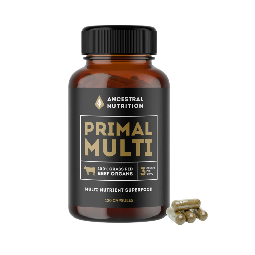 Primal Multi by Ancestral Nutrition brings together the nutrient-dense benefits of grass-fed beef liver, heart, and kidney to support holistic health. This potent natural supplement, rich in bioavailable iron, CoQ10, B-vitamins, and antioxidants, is freeze-dried to retain all essential nutrients. Ideal for those seeking organic health supplements that support energy, immunity, and digestion, Primal Multi is a complete, low-tox wellness solution.