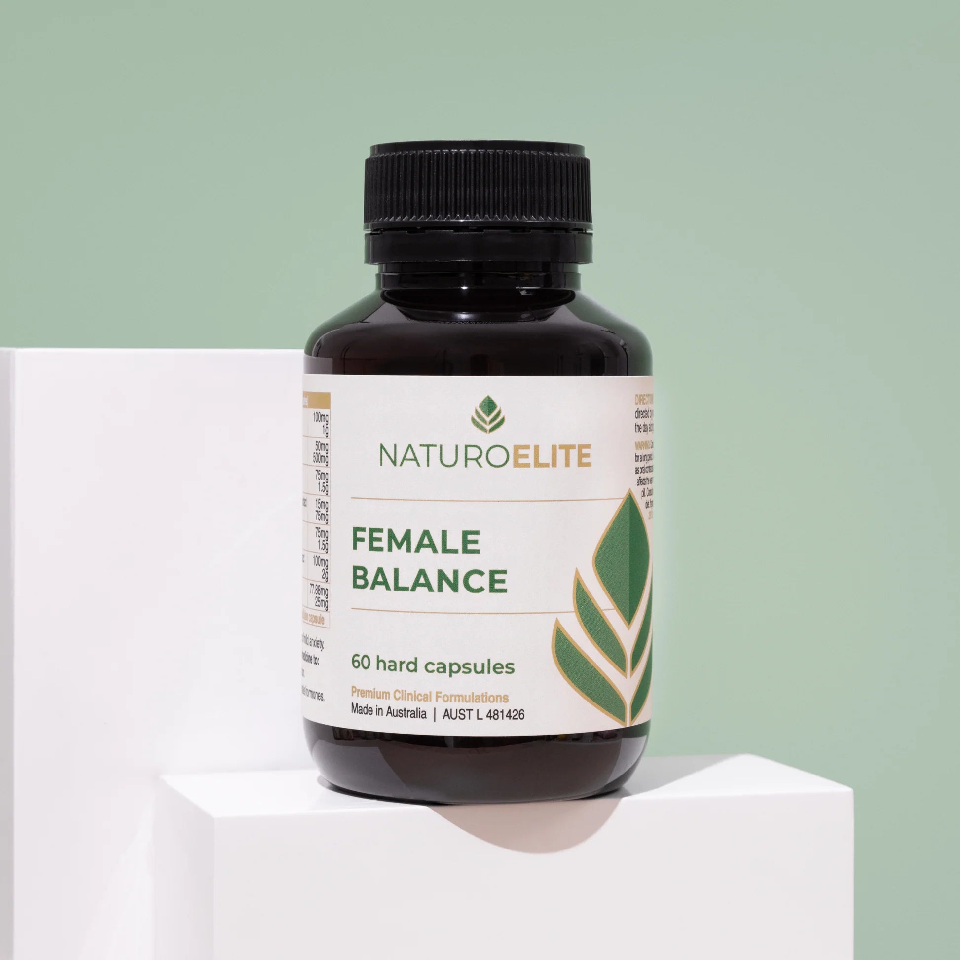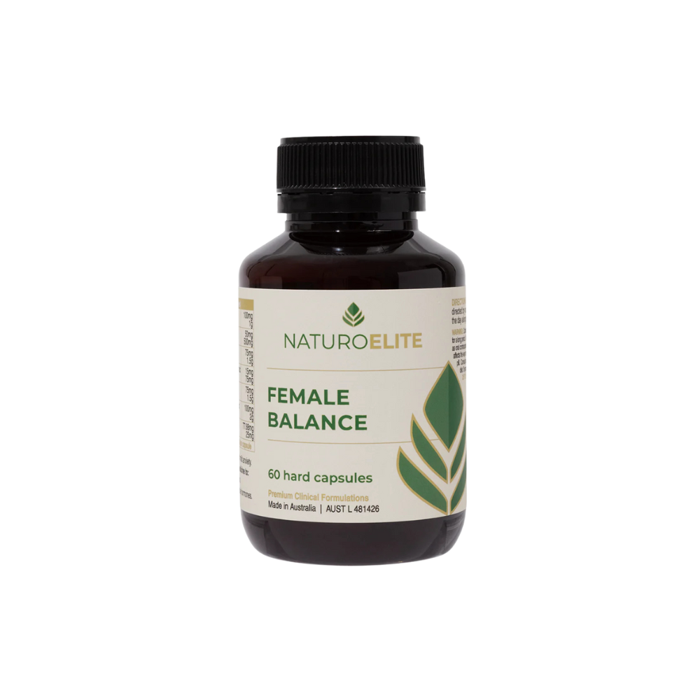 NaturoElite Female Balance is a comprehensive, targeted formulation designed to support women through all phases of their hormonal cycle — from PMS to perimenopause and beyond. It helps maintain healthy female reproductive hormones, supports a balanced menstrual cycle, and reduces breast tenderness and menstrual pain. This formula promotes emotional wellbeing by reducing mood swings, irritability, aggression, and symptoms of mild anxiety, while calming the mind and supporting a healthy stress response. It also enhances sleep quality by reducing restlessness and supporting deep, restorative sleep. For perimenopausal women, it helps relieve hot flushes. Featuring patented Safr’Inside® saffron for stress support and improved sleep, this vegan-friendly, low-excipient blend delivers pure, high-quality herbal and nutritional ingredients without unnecessary fillers.