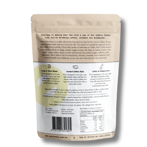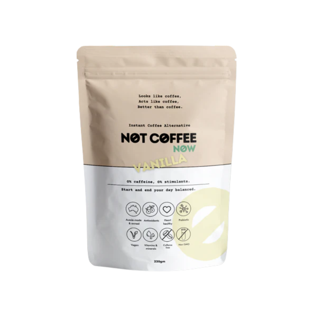Looking to add a touch of indulgence to your coffee alternative experience? Not Coffee Now Vanilla is here to captivate your taste buds and elevate your mornings with its irresistible flavour. Experience the ultimate convenience and wholesome indulgence with Not Coffee Now (Instant). This remarkable instant coffee alternative is designed to replicate the look, taste, and functionality of traditional coffee without the downsides.