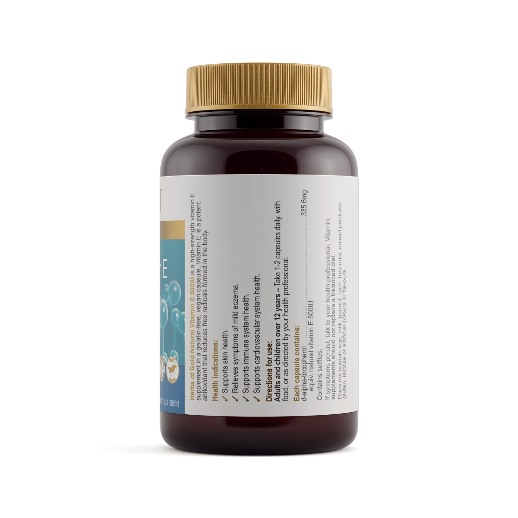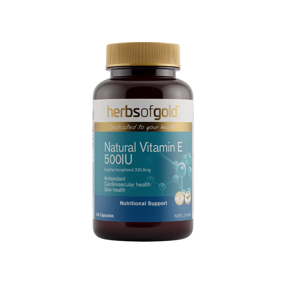 Natural Vitamin E 500IU provides vitamin E in its natural form, d-alpha-Tocopherol, a potent antioxidant that helps reduce free radicals formed in the body. As part of the body’s antioxidant network, vitamin E plays an important role in recycling antioxidants and protecting cells from free radical damage linked to oxidative stress. It supports skin health, helping to relieve itchy skin associated with mild eczema and mild dermatitis, while also supporting cardiovascular health and maintaining healthy immune system function. In addition, vitamin E is important for male reproductive health, playing a key role in the maintenance of sperm health and motility.
