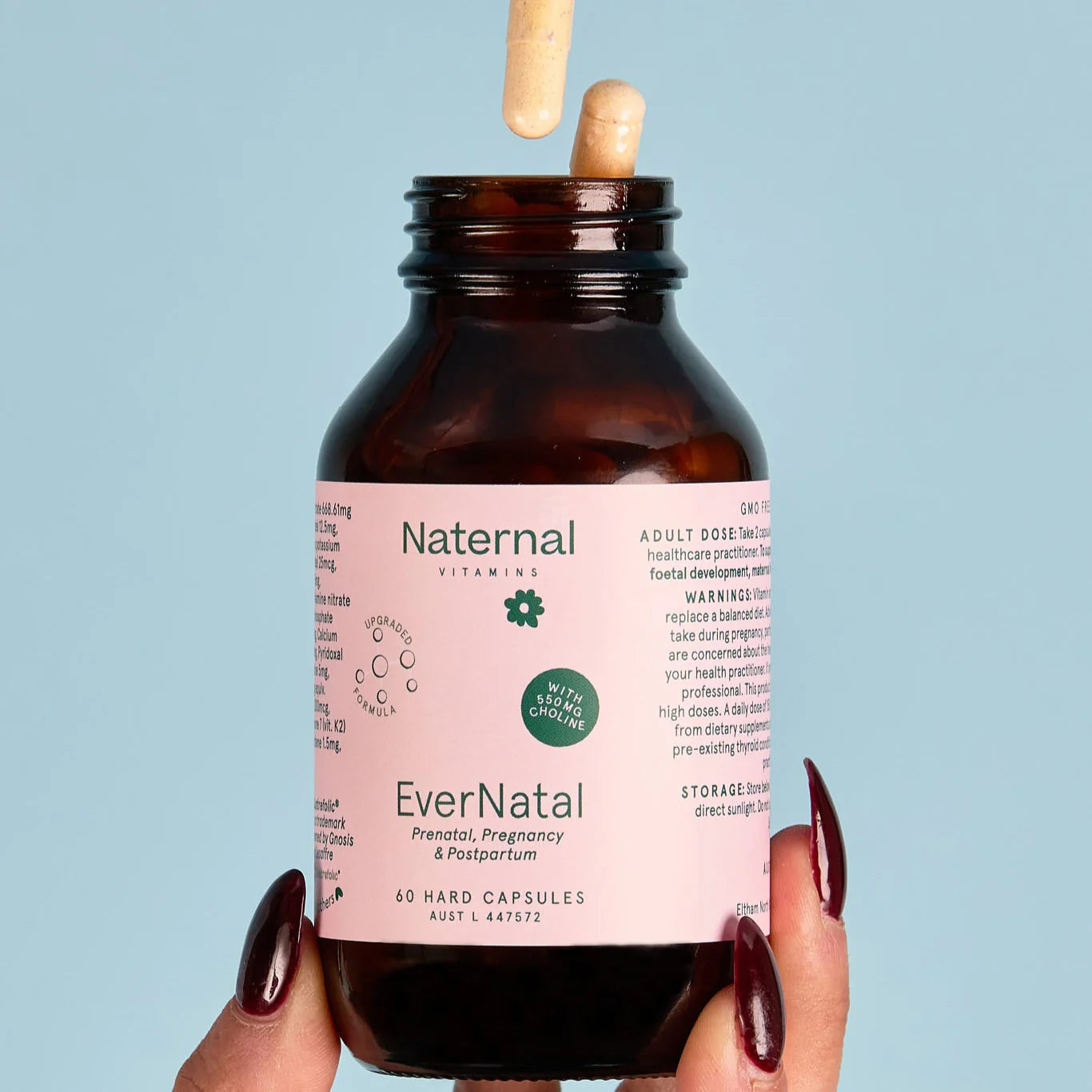 EverNatal by Naternal Vitamins is a prenatal supplement designed to provide key nutrients for women during preconception, pregnancy, and breastfeeding. Formulated with bioavailable ingredients, it includes essential vitamins and minerals, such as folate, to help meet daily nutritional needs as part of a balanced diet.