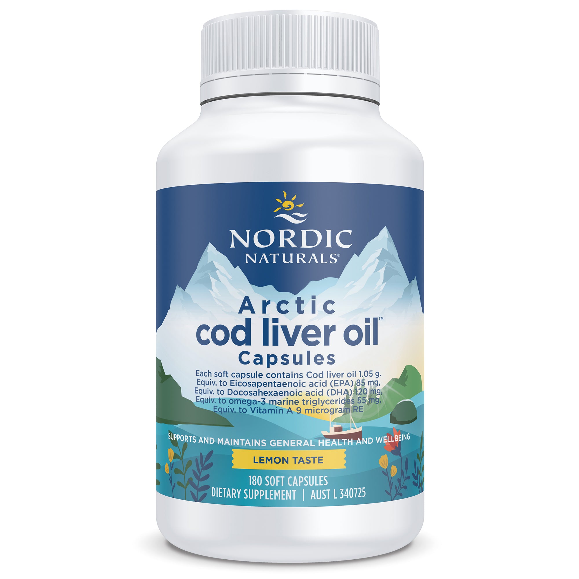 Additional ingredients: Purified arctic cod liver oil, soft gel capsule (gelatin, glycerin, water, natural lemon flavour), d-alpha tocopherol (antioxidant), rosemary extract (natural preservative).