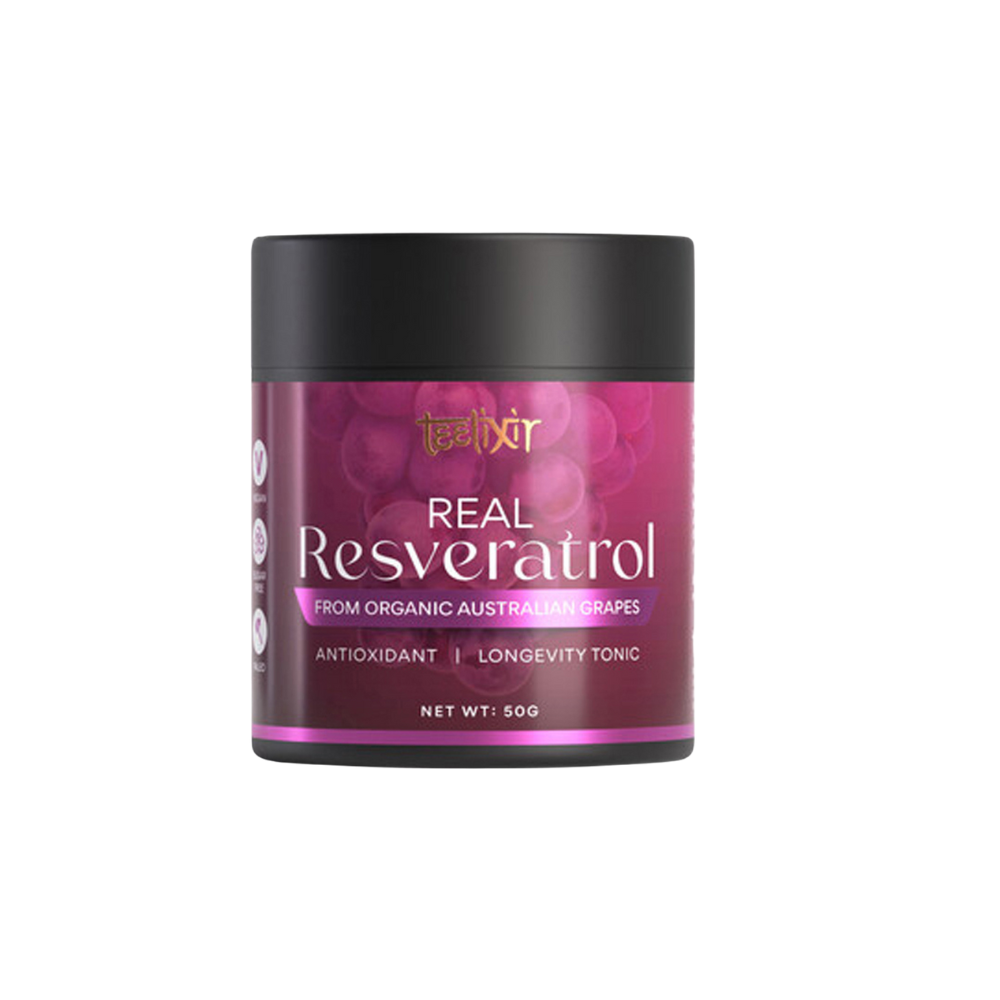 Teelixir Real Resveratrol is a premium, naturally sourced antioxidant extracted from the skins of organic red wine grapes grown in Australia’s renowned Hunter Valley. By going straight to the grape skins—the richest natural source of resveratrol—this formula delivers a pure, potent form of this celebrated longevity compound. After the grapes are pressed for juice, the remaining skins are transformed into a concentrated wellness extract, capturing the true essence and benefits of the grape.