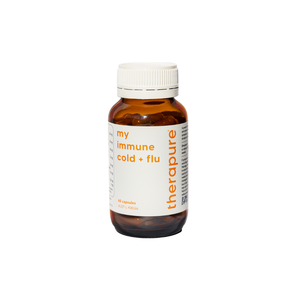 Therapure My Immune Cold and Flu is a herbal supplement formulated to support the body’s natural defence system during cold and flu season. Crafted with a carefully selected blend of herbs, this formula is designed to work synergistically to support immune function and provide relief from cold and flu symptoms. Created to help you stay ahead of seasonal infections, it supports overall wellness while targeting common symptoms associated with colds and flu.